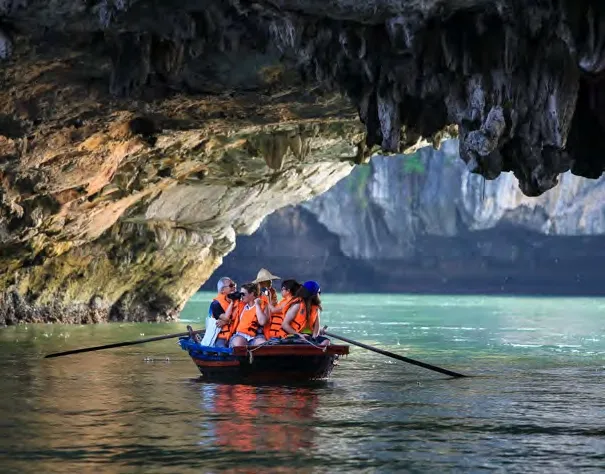 - 14:15–14:30: Kayaking or bamboo boat experience at Luon Cave, exploring a peaceful lagoon surrounded by towering cliffs.